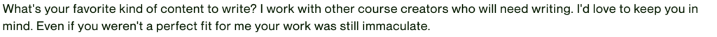 Many people who get started on Upwork are new to what they’re doing. For me, I definitely was. I went to school for theatre, and was a performer, but suddenly, started teaching myself everything to know about writing and SEO. I was a beginner, so I had to leverage what I had, which, as I was gaining writing and SEO skills, was having strong soft skills. I focused lots of my efforts on: